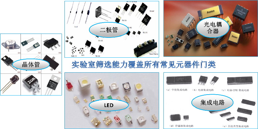 • 元器件筛选是提升电子装备可靠性的关键手段,中科晟构建了先进的国产化电子元器件的可靠性筛选及量产测试技术能力,提供电子元器件测试、评估、质量保证的成套方案,帮助企业及时发现和剔除有缺陷易发生早期失效的元器件,提高电子元器件的使用可靠性。